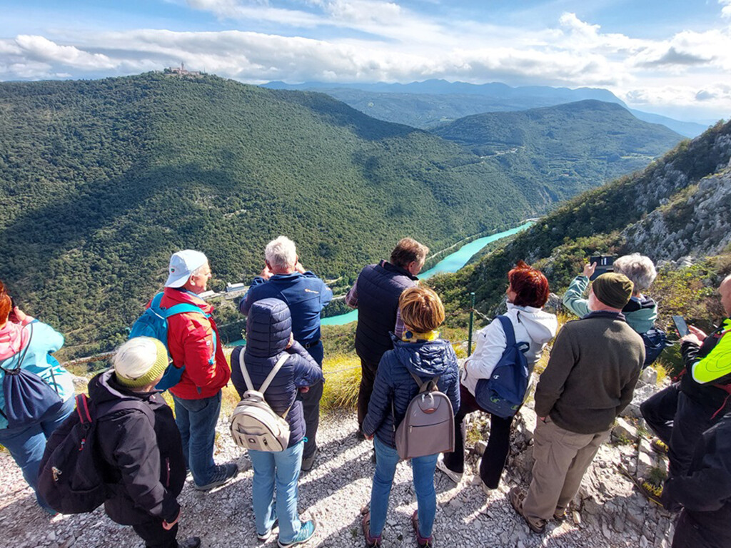 V torek, 17. Septembra 2024 smo se upokojenci z Gorenjske odpravili na Primorsko. Na kavici smo se najprej ustavili v Vipavi, skočili do izvira Vipave, potem pa naprej na Sabotin. Res razgledan in načrtan vodič nas je popeljal skozi zgodovino soške fronte in kaverne. Po dobri joti in jabolčnem zavitku smo se odpravili na razgledni stolp, potem pa v vinsko klet Goriška Brda. Zanimiv sprehod skozi klet, kjer nas je popeljala vodička in pa seveda navdušenje nad degustacijo štirih vrst vin, zraven pa sir in olive… Čas je kar prehitro minil in odpraviti smo se morali spet proti Gorenjski. Po poti smo pa še malo okusili kako zna burja ponagajat in premetavat avtobus.