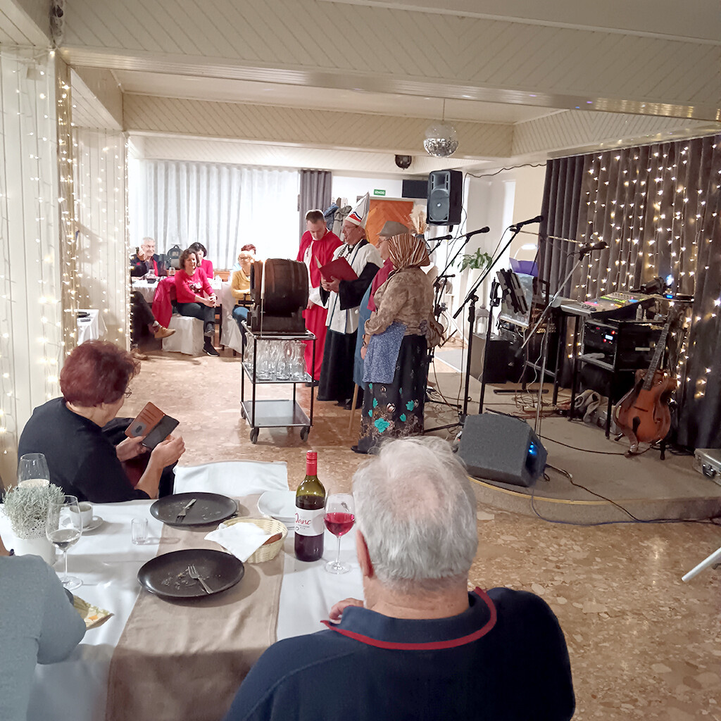 Po dvournem sprehodu po gradu, se seveda prileže tudi kaj pojesti in popiti. V gostilni Janc so nam postregli najprej z aperitivom in ocvirkovko, na jedilniku ni manjkala martinova gos, po krstu mošta pa so nam postregli mlado vino. Ob glasbi so se nekateri člani tudi zavrteli. A kaj, ko je vsega lepega enkrat konec in potrebno se je vrniti domov.
