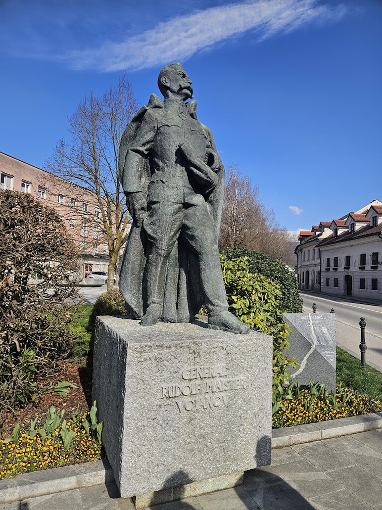 V parku ima od leta 2023 osrednje mesto mamut. Gre za skulpturo v naravni velikosti, ki jo je leta 2008 izdelal kamniški kipar Miha Kač in meri dobre štiri metre v višino, šest metrov v dolžino in tri metre v širino. Izdelava bronastega odlitka, ki tehta dve toni in pol, je bila zaupana livarni umetnin Romana Kamška na Gori pri Komendi. Skulptura mamuta temelji na okostju, ki so ga leta 1938 našli v bližnjih Nevljah in velja za eno najbolje ohranjenih mamutovih okostij v Evropi. Kamniški umetnik Miha Kač je okostje, ki ga hrani Prirodoslovni muzej v Ljubljani, preučil in pripravil kalup v naravni velikosti. Gre torej za izjemno arheološko dediščino, ki jo bo Občina Kamnik poskušala približati prebivalcem in drugim obiskovalcem, tudi turistom, ki prihajajo v Kamnik z avtobusom. Iz parka, nas je vodnica po ozkih ulicah, gasah, popeljala na raziskovanje Kamnika. Po ozkem Šlajkarjevem prehodu smo se napotili proti spomeniku Rudolfa Maistra. Ustavili smo se na Tomšičevi ulici, kjer smo se poučili o nastanku in zgodovini Kamnika. Spomenik Rudolfu Maistru je javni spomenik, ki stoji na Trgu talcev v samem središču mesta Kamnik. Celopostavni kip je prvi na slovenskem in je posvečen generalu Rudolfu Maistru-Vojanovu, vojaku, zazrtemu v prihodnost, z zvitkom v desnici, pesniku in vizionarju. Leta 1970 ga je izdelal akademski kipar Anton Sigulin. Rudolf Maister–Vojanov se je rodil 29. marca 1874 na Šutni 16 v Kamniku. Kip je postavljen v zahvalo za njegove zasluge v boju za severno mejo 1918-1919.