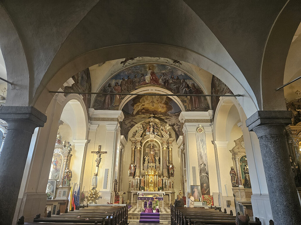 Ogled Kamnika smo nadaljevali proti rojstni hiši Rudolfa Maistra mimo župnijske cerkve sv. Marije brezmadežne na Šutni. Zgrajena je bila leta 1734 na mestu prejšnjih cerkva, ima ločen gotski zvonik iz poznega srednjega veka. Župnijsko cerkev je dal zgraditi takratni duhovnik Maksimilijan Leopold Rasp. Načrte za izgradnjo je izdelal arhitekt Gregor Maček, poslikavo prezbiterija pa je naredil najboljši baročni freskant Franc Jelovšek. Jože Plečnik je stari krstilnici v cerkvi vdihnil novo podobo. Načrte za prenovo je po arhitektovih zamislih naredila Plečnikova učenka Erna Tomšič.