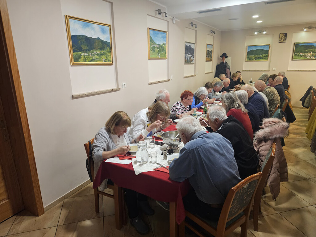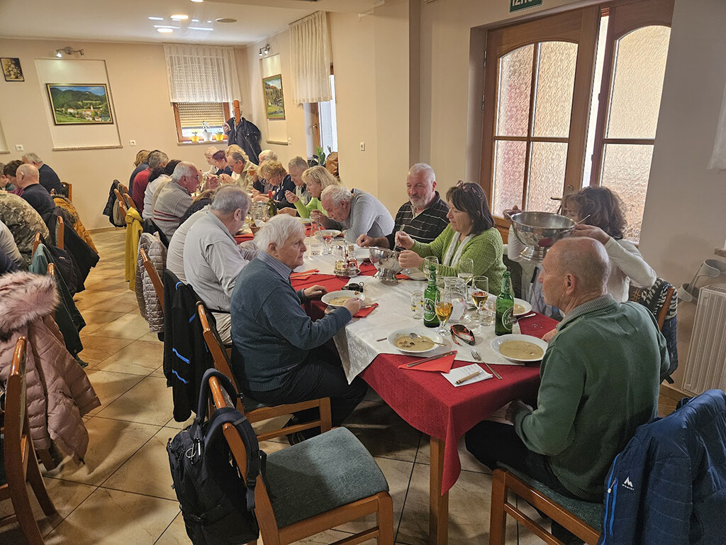 Po ogledu Kamnika smo se odpravili na zasluženo kosilo v Zgornji Tuhinj 29, kjer smo v »Okrepčevalnici pri Mežnarju«, dobili odlično, tradicionalno kosilo. Tam nudijo pester izbor kulinaričnih užitkov, ki združujejo tradicionalne slovenske jedi. Njihova kuhinja je znana po okusnih in domačih jedeh, ki zadovoljijo vsako brbončico. V prijetni družbi smo še malo poklepetali in se zadovoljni vrnili v Ljubljano.
