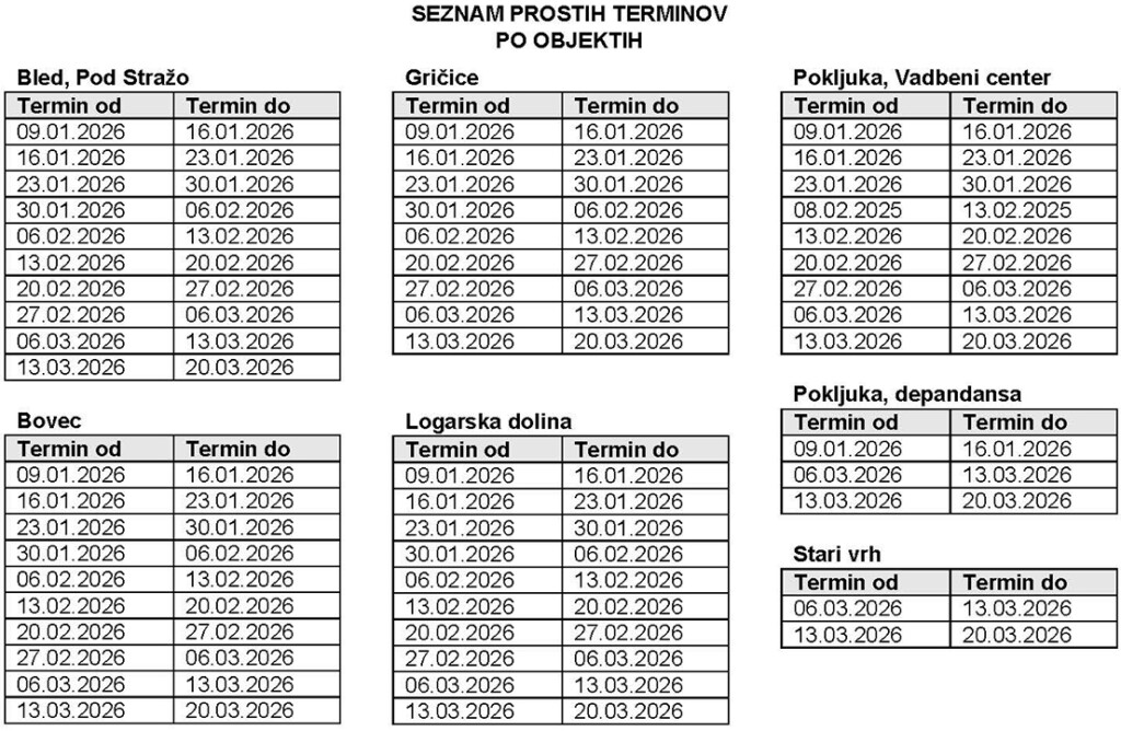 Prosti termini dne 7. 1. 2026